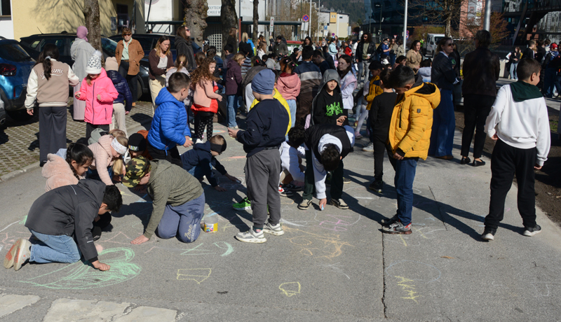 Vergangenen Mittwoch, 8. April, wurde die neue Schulstraße mit einem großen Straßenfest samt umfangreichen Rahmenprogramm feierlich eröffnet. Dafür wurden die Adolf Pichler-Straße, die Michael Unterguggenberger-Straße sowie die Dr. Franz Stumpf-Straße den ganzen Vormittag für den kompletten Verkehr gesperrt. Nach einem musikalischen Auftakt durch den Schulchor setzten Kinder der fünf Schulen durch gemeinsames Bemalen ausgewählter Straßenbereiche ein klares Zeichen für mehr Sicherheit, mehr Bewegungsraum und eine höhere Aufenthaltsqualität im Umfeld der Schulen.