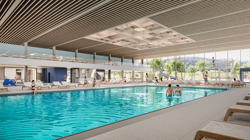 Das vorgestellte Konzept umfasst neben dem Bad rund 7.900 m² zusätzliche Nutzfläche, darunter eine Kletterhalle mit Außenkletterturm, einen multifunktionalen Veranstaltungssaal, Gastronomiebereiche sowie Bereiche für Gesundheit, Wellness und Beauty. Durch die Kombination sollen Synergien zwischen Freizeit, Sport, Kultur und Wirtschaft entstehen.